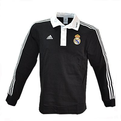 ADIDAS Polo Rugby Manches Longues Adidas Real Madrid Noir réf:367232Matière: 100% coton. Col Blanc, Bandes Adidas sur les manches blanches. Logo Adidas brodé et Ecusson Real Madrid cousu sur la poitrine. Ce polo d'Adidas Performance a été conçu spécialement pour les supporters du Real Madrid.Prix Public : 50