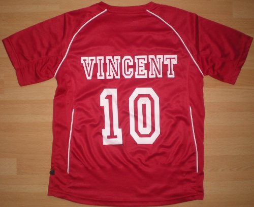 PATOUTATIS - t-shirt - maillot foot personnalisé avec prénom et numéro de votre choix - manches courtes col V - JN386K - rouge - enfant taille L - 134/140 cm