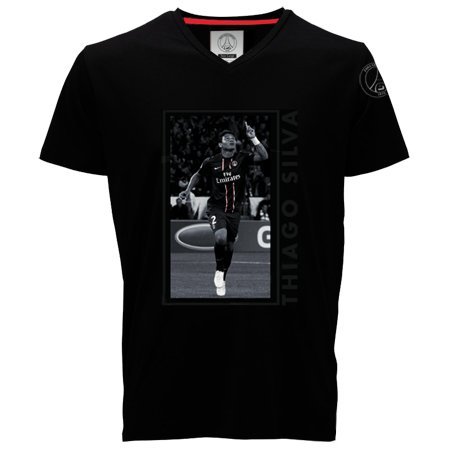 Collection officielle PARIS SAINT GERMAIN. T-shirt PSG, Thiago SILVA, n°2. Taille adulte, couleur noir. T-shirt col V, haute qualité, matière 50% modal 50% coton, lavable en machine. Produit sous licence officielle, marque protégée.