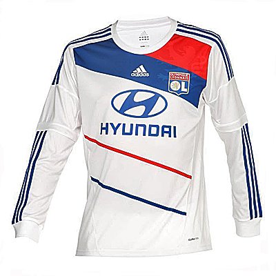 achat OL H JSY textiles maillot foot : maillot de l'olymique lyonnais, coloris blanc, bleu et rouge pour hommes de la marque adidas. quand les gones imposent leur jeu